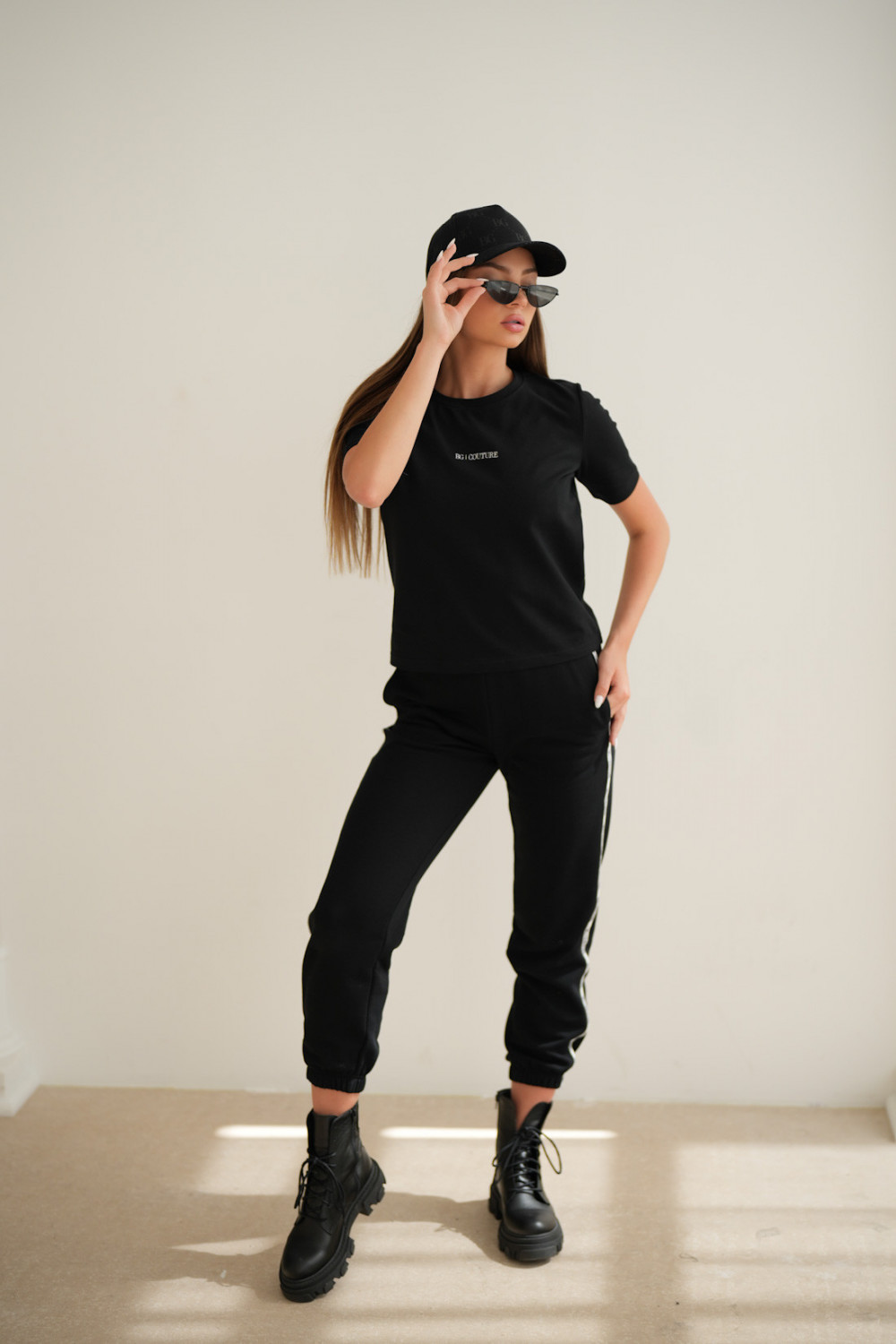 Klasyczny T-shirt z wysokiej jakości bawełny. T-shirt posiada haftowane logo na środku. Modelka na zdjęciu posiada na sobie rozmiar S.